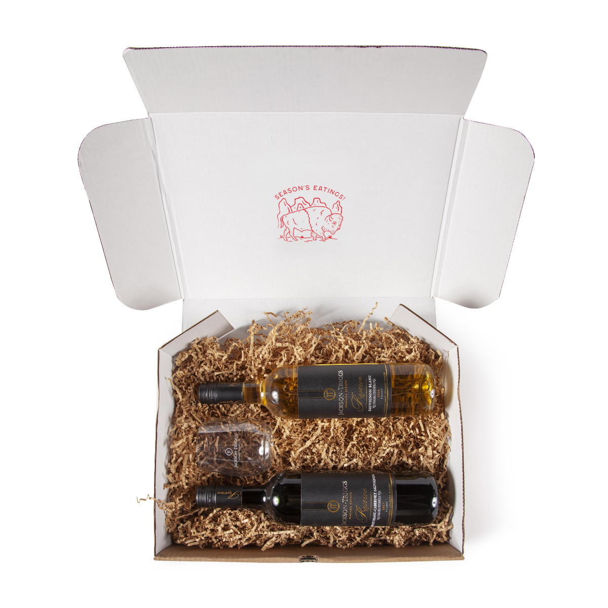2 Bottles of Jackson Triggs Reserve, carry bag and wine glass.